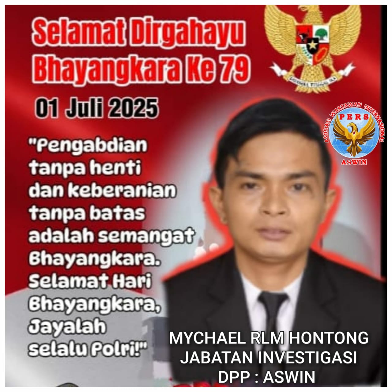 BITUNG, Aswinnews.com – Dalam rangka memperingati Hari Ulang Tahun (HUT) Bhayangkara ke-79 pada tahun 2025, Mychael RLM Hontong, Tim Investigasi DPP di Keorganisasian Aswin, bersama wartawan Media Aswinnews.com serta jajaran Asosiasi Wartawan Internasional, memberikan apresiasi dan dukungan penuh untuk Polri.