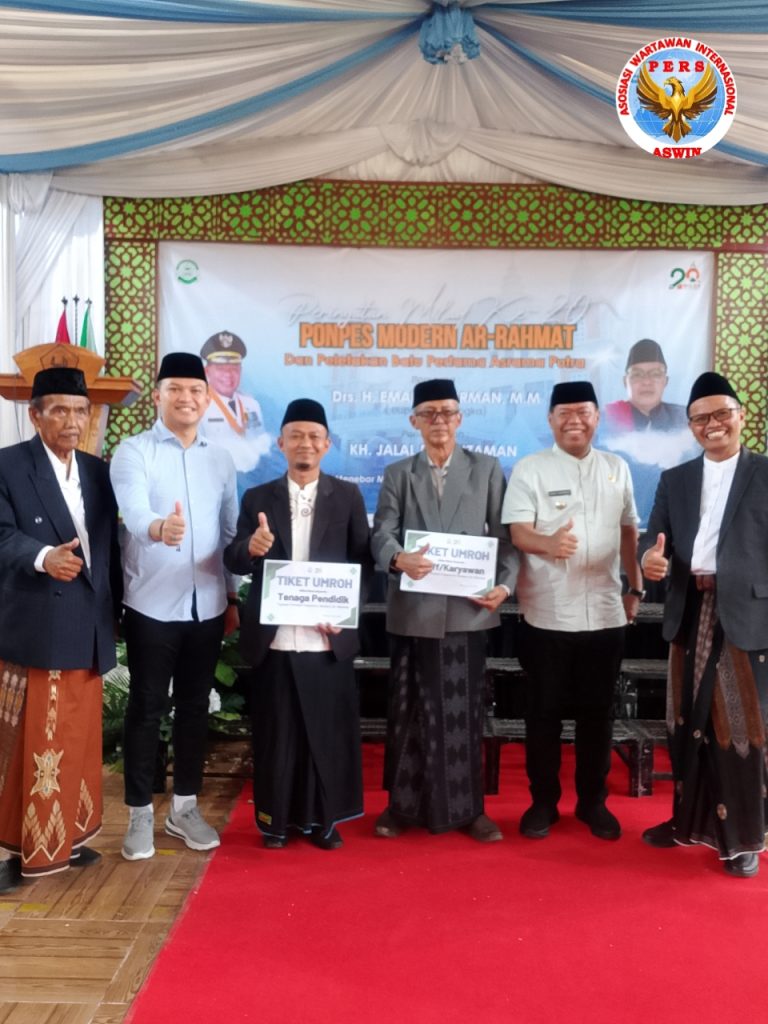MAJALENGKA,AswinNews.com – Bupati Eman Suherman :dan Wakilnya Dena M. Ramdhan menghadiri peringatan milad ke-20 Ponpes modern Ar-Rahmat dan peletakan batu pertama asrama putra. Kegiatan milad dilaksanakan di Aula Ar-Rahmat, Ponpes modern Ar-Rahmat, Desa Weragati, Kecamatan Palasah, Majalengka.