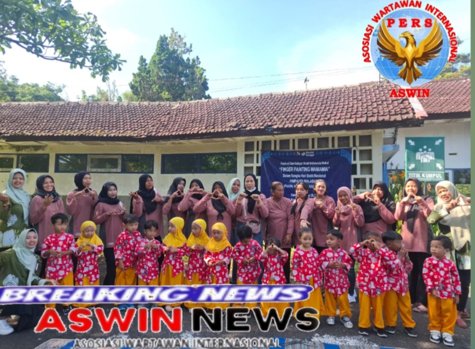 To commemorate National Batik Day, three early childhood education institutions (KB/PAUD) in Ngantang District collaborated to hold an event titled “Festival and Celebration of Great Indonesian Children – Finger Painting Mamaia.” This event was held outdoors at the Selorejo Reservoir Tourism Park and was connected live simultaneously with KB/PAUDs in three districts: Ngantang, Pujon, and Kasembon, which are members of HIMPAUDI Malabar.