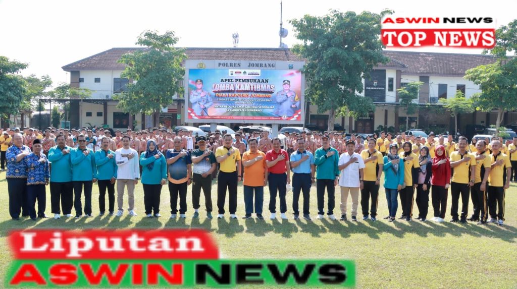 JOMBANG – ASWINNEWS.COM | Kapolres Jombang AKBP Ardi Kurniawan, S.H., S.I.K., CPHR, didampingi Bupati Jombang Abah Warsubi, memimpin apel pembukaan Lomba Kamtibmas Piala Kapolres Jombang yang digelar di Lapangan Mapolres Jombang, Jalan KH. Wahid Hasyim No. 62 Jombang, Jumat (17/10/2025).