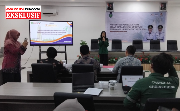 Mahasiswa Dan Mahasiswi Institut Teknologi Petroleum Balongan (ITPB) Kabupaten Indramayu Program Studi D3 Teknik Kimia Sangat Memukau saat acara Presentasi Penilaian Final Gelar Cipta Inovasi Unggulan Indramayu (GINCU-AYU) Tahun 2025 yang diselenggarakan di Aula Lantai 2 Bappeda-Litbang Jl. Letjen. S. Parman No.15, Kelurahan Margadadi, Kecamatan Indramayu, Kabupaten Indramayu, Kamis (30/10/2025).