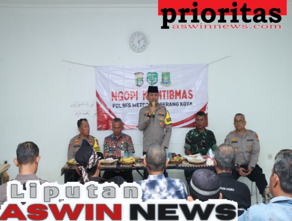 Kapolres Metro Tangerang Kota Kombes Pol Dr. Raden Muhammad Jauhari, S.H., S.I.K., M.Si. bersama Pejabat Utama (PJU) Polres melaksanakan kegiatan Ngopi Kamtibmas bersama warga di Kelurahan Larangan Utara, Kecamatan Larangan, Kota Tangerang, Kamis sore (30/10/2025).