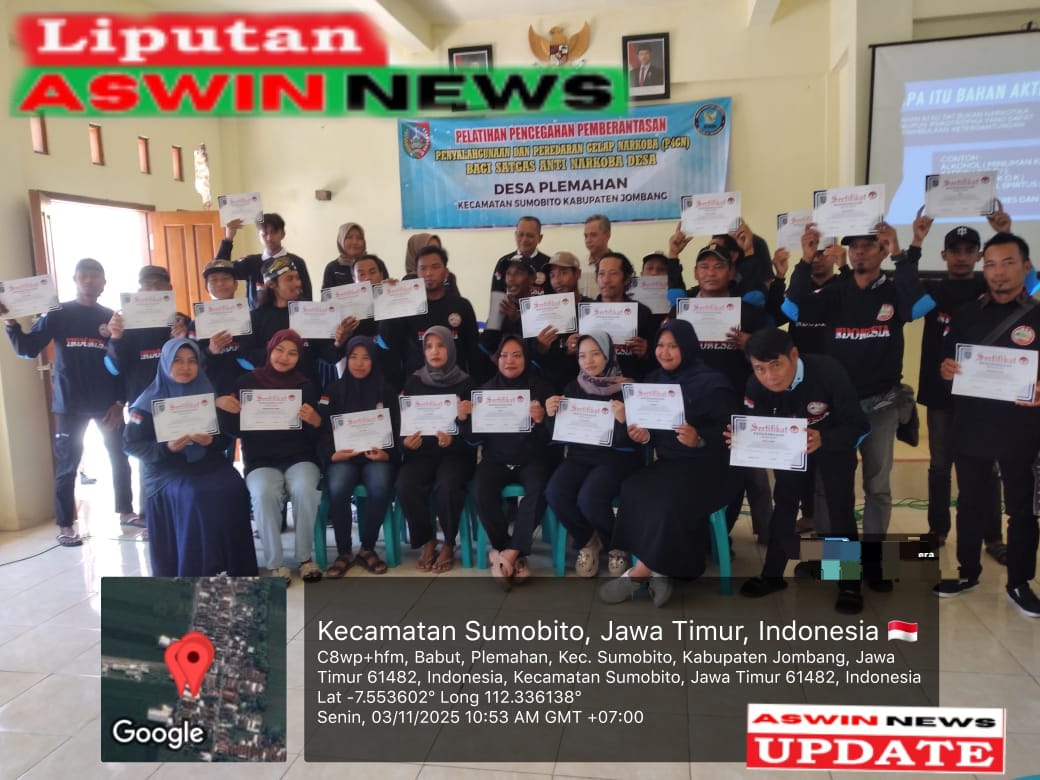 The Government of Plemahan Village, Sumobito Subdistrict, Jombang Regency, has officially established and inaugurated the Task Force for the Prevention, Eradication, Abuse, and Illicit Trafficking of Narcotics (P4GN).