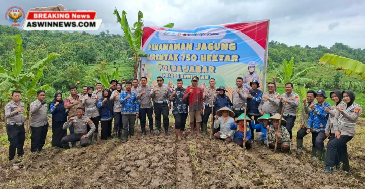 Kuningan – AswinNews.com — Tugas polisi lalu lintas (Polantas) tidak melulu soal mengatur arus kendaraan di jalan raya. Jajaran Satuan Lalu Lintas (Satlantas) Polres Kuningan membuktikan peran sosialnya dengan terjun langsung ke sawah untuk menanam jagung di lahan seluas 2 hektare, berlokasi di Desa Cibulan, Kecamatan Cidahu, Kabupaten Kuningan, Kamis (29/1/2026).