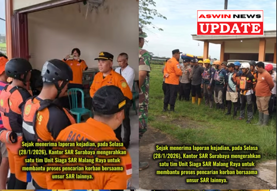 Nanang menambahkan, sejak menerima laporan kejadian tenggelam pada Selasa (28/1/2026), Kantor SAR Surabaya telah mengerahkan satu tim Unit Siaga SAR Malang Raya guna membantu proses pencarian bersama unsur SAR lainnya.