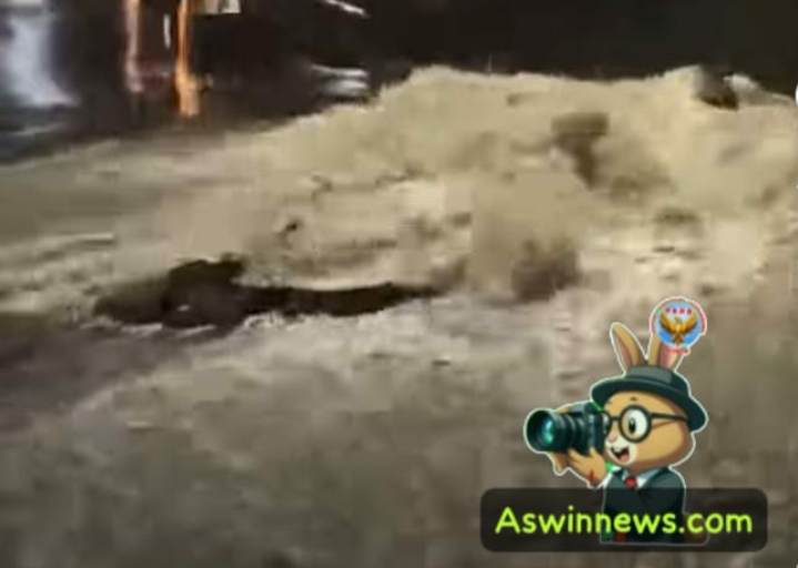 Kebocoran terjadi pada pipa transmisi berdiameter sekitar 600 milimeter, menyebabkan air menyembur deras hingga menggenangi badan jalan.