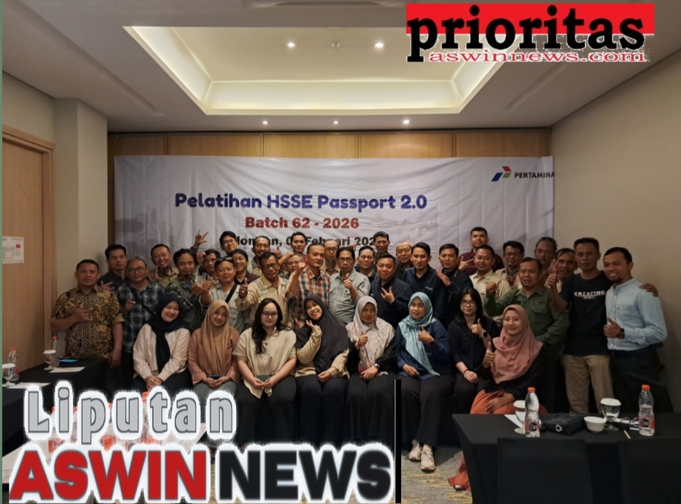 Indramayu, Aswinnews.com – PT Kilang Pertamina International (KPI) Refinery Unit (RU) VI Balongan melalui HSSE Training Center kembali menggelar Pelatihan HSSE Passport 2.0 Batch 61-2026 bagi pekerja Pertamina dan Tenaga Alih Daya (TAD). Kegiatan tersebut berlangsung lancar dan sukses di Aula Swastika Meeting Room Hotel Swiss-Bellinn Indramayu, Kamis (5/2/2026).