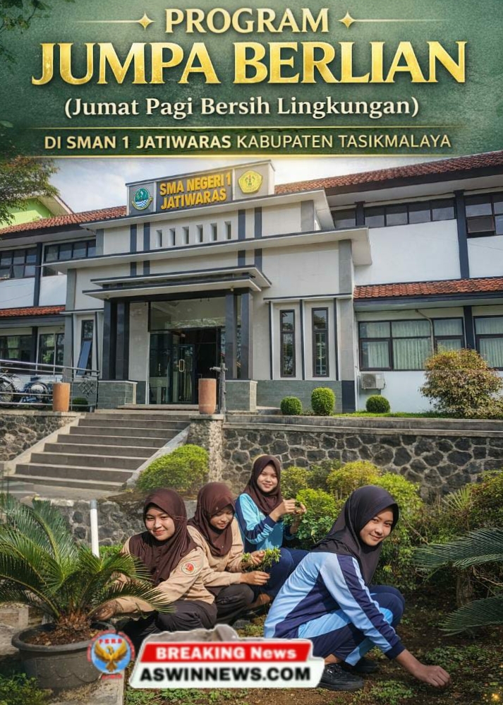 Tasikmalaya – AswinNews.com — SMAN 1 Jatiwaras Kabupaten Tasikmalaya terus berinovasi dalam menciptakan lingkungan sekolah yang bersih, sehat, dan nyaman melalui program unggulan bertajuk JUMPA BERLIAN atau Jumat Pagi Bersih Lingkungan.